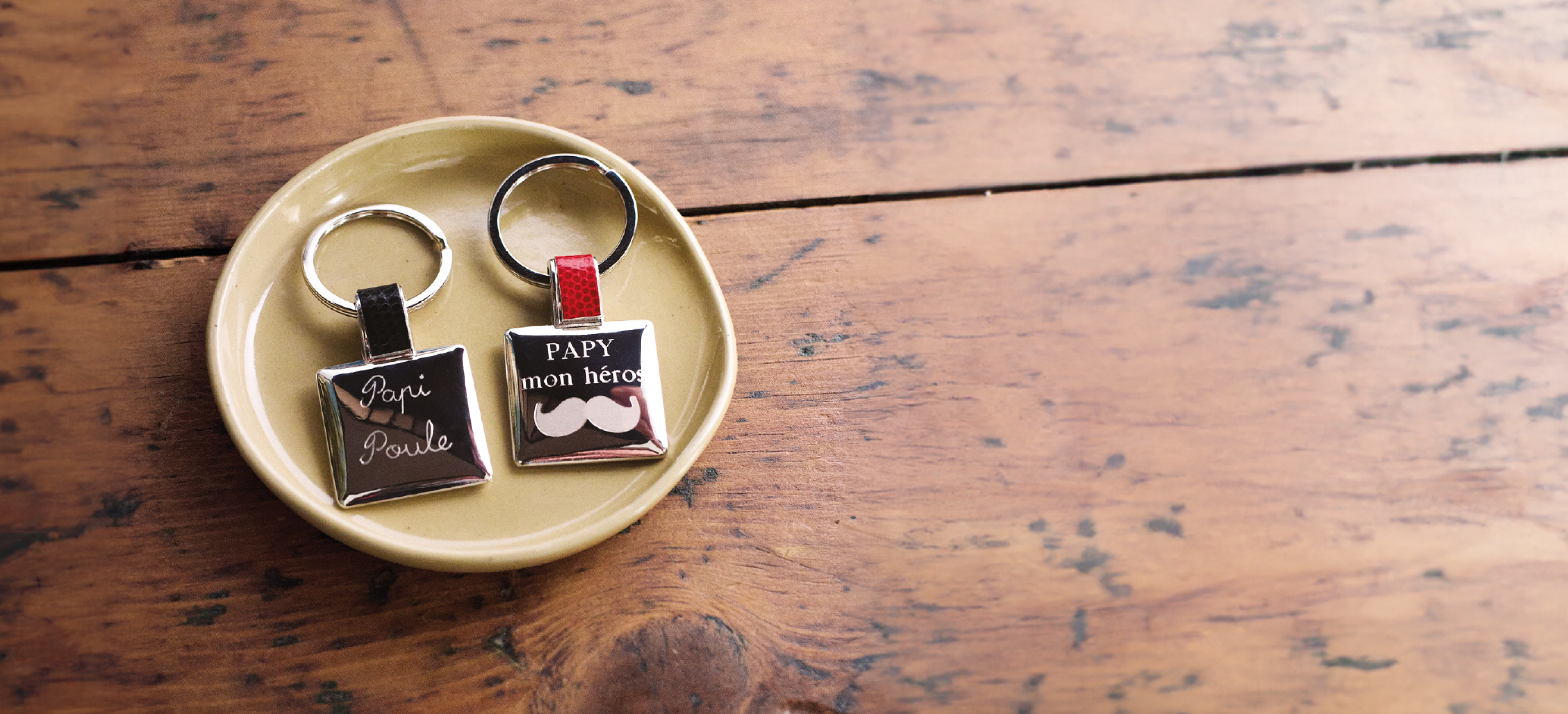 Porte-clés acier et cuir carré rouge